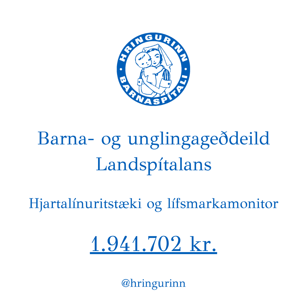 Í október samþykkti stjórn Hringsins styrk til Barna- og unglingageðdeildar Landspítalans til kaupa á hjartalínuritstæki og lífsmarkamonitor að fjárhæð 1.941.702 kr.