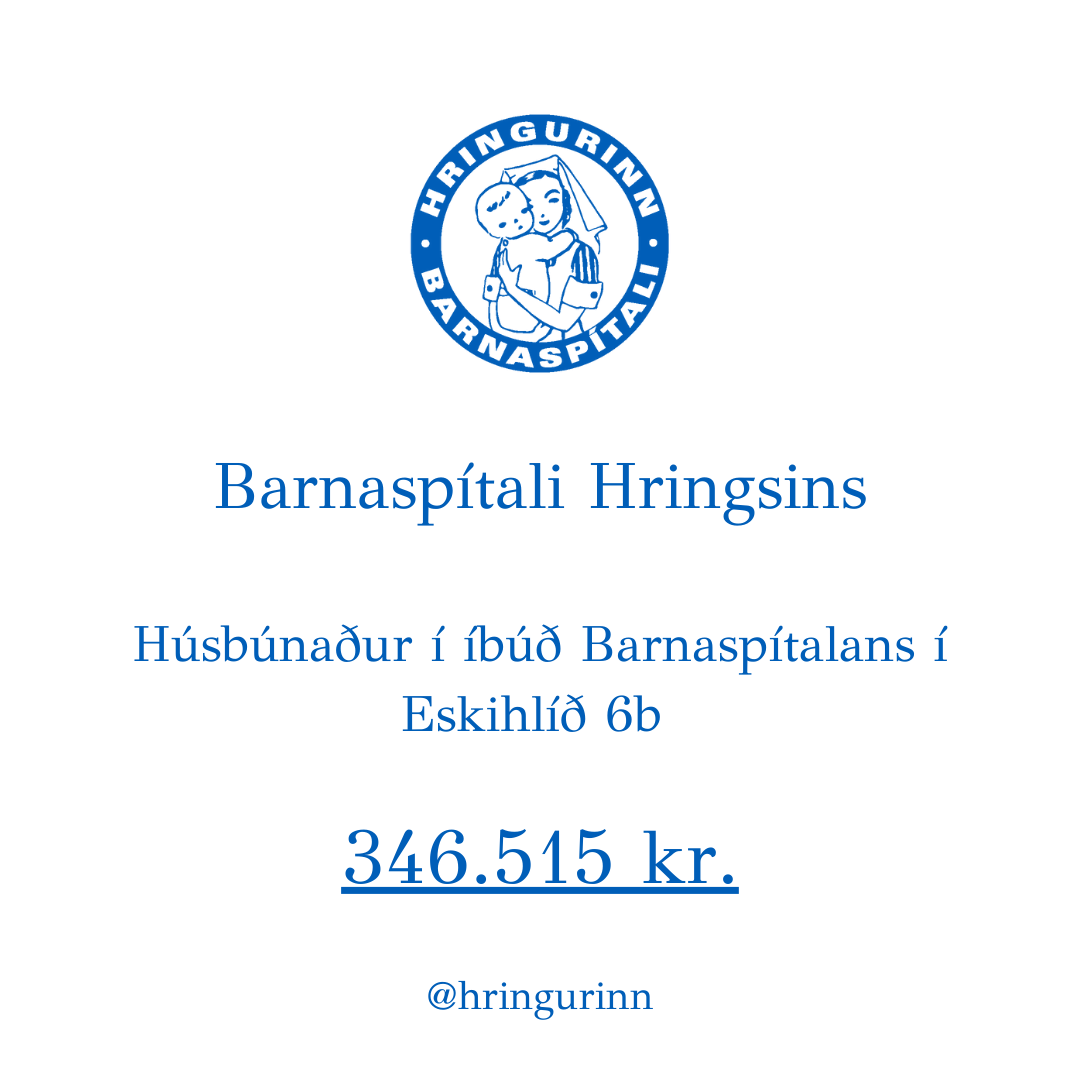 Í október samþykkti stjórn Hringsins styrk til Barnaspítala Hringsins til kaupa á húsbúnaði í íbúð Barnaspítalans í Eskihlíð 6b að fjárhæð 346.515 kr.