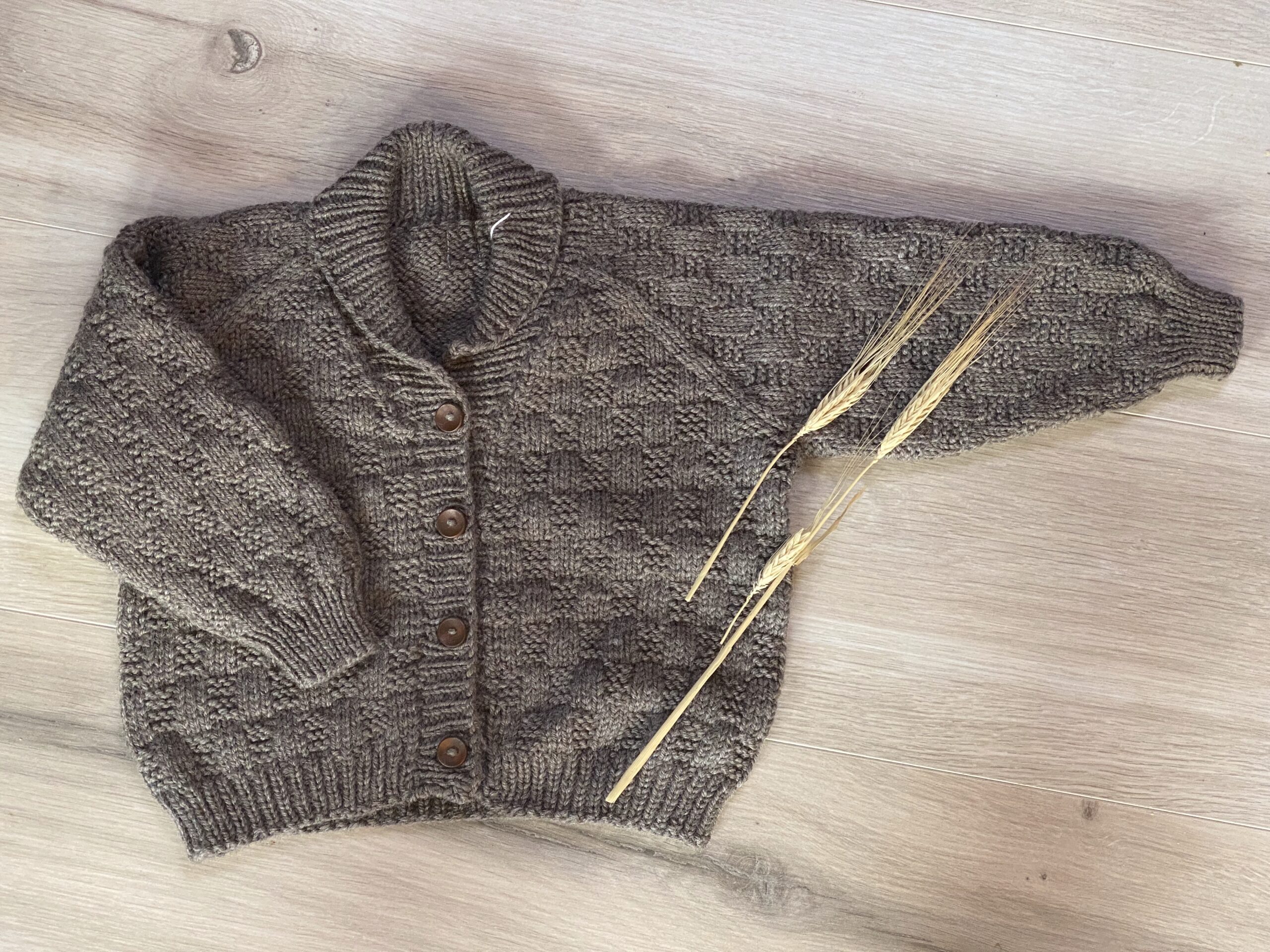 Sparilega Dadda peysan með sjal kraganum er prjónuð  úr 100% Drops merínó ull, Þú velur litinn og við prjónum vöruna.