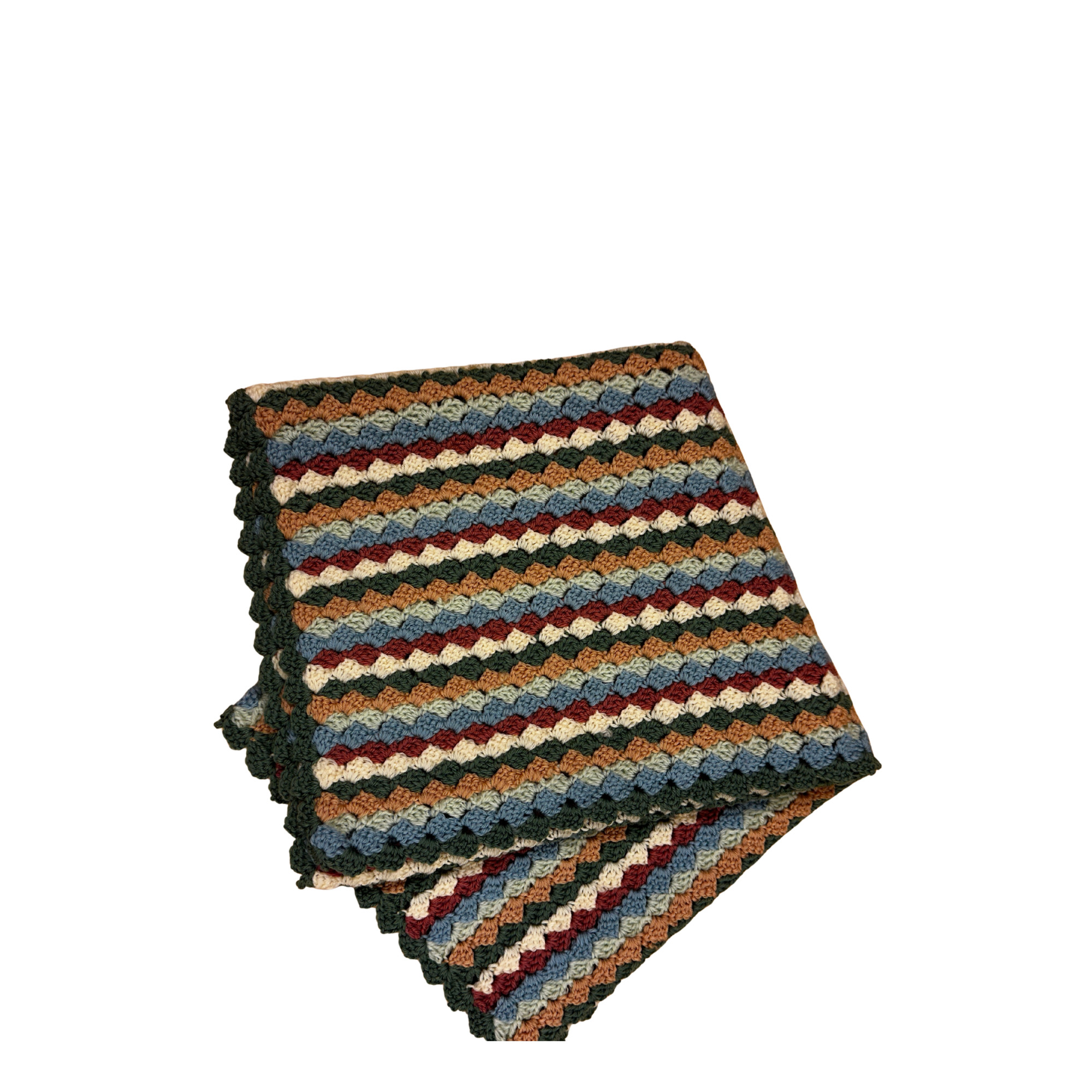 Heklað ullarteppi í fallegum litatónum. Hentar vel í vagninn. Stærð 80 x 58 cm.